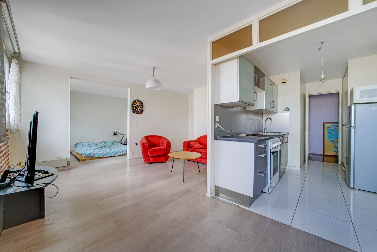Montreuil Quartier 7 Chemins / Paul Signac - 5mn Futur Tramway T1 et 10 Mn Métro Mairie de Montreuil - Entouré d'espaces verts et Potager - Dans Immeuble des années 75 très bien entretenu avec Gardien et Local à Vélos - Accessible Egalement à PMR - Au 7eme et DERNIER Etage avec Ascenseur Beau 3P Ensoleillé et Lumineux Composé : D'une Entrée, un séjour, 2 Chambres Possibilité 3, une Cuisine , une Salle de Bains, un Wc indépendant et au sous-sol un Box fermé - 120 lots charges an 3960 (tout compris) BEAU VOLUME - Vous serez surpris par le SILENCE ET LE CALME